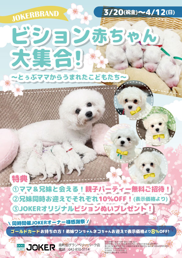 安心にこだわるジョーカーでは信頼のおける契約ブリーダーと当社繁殖犬のみ販売。