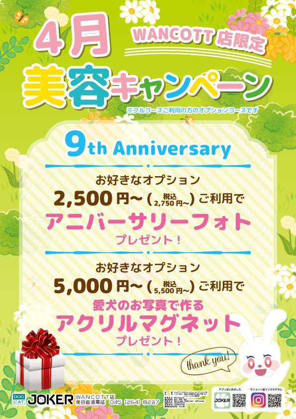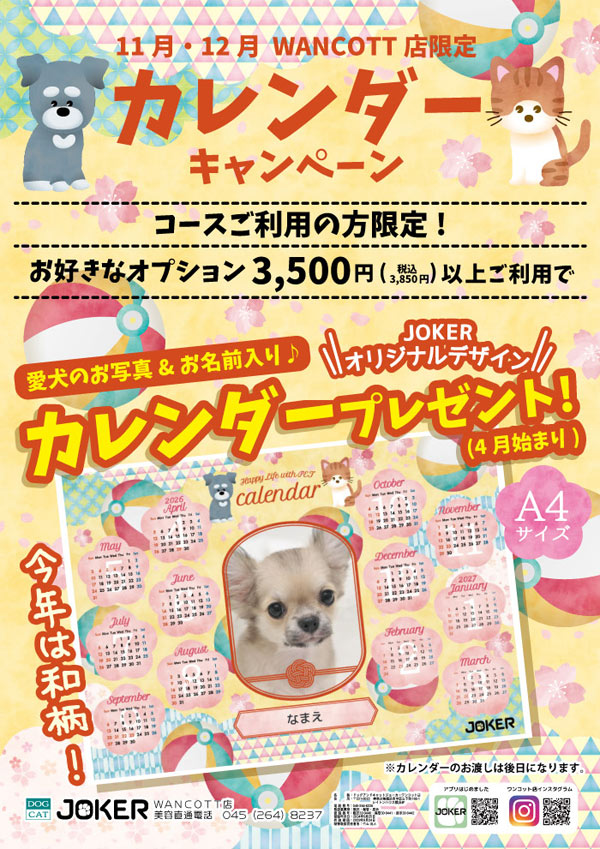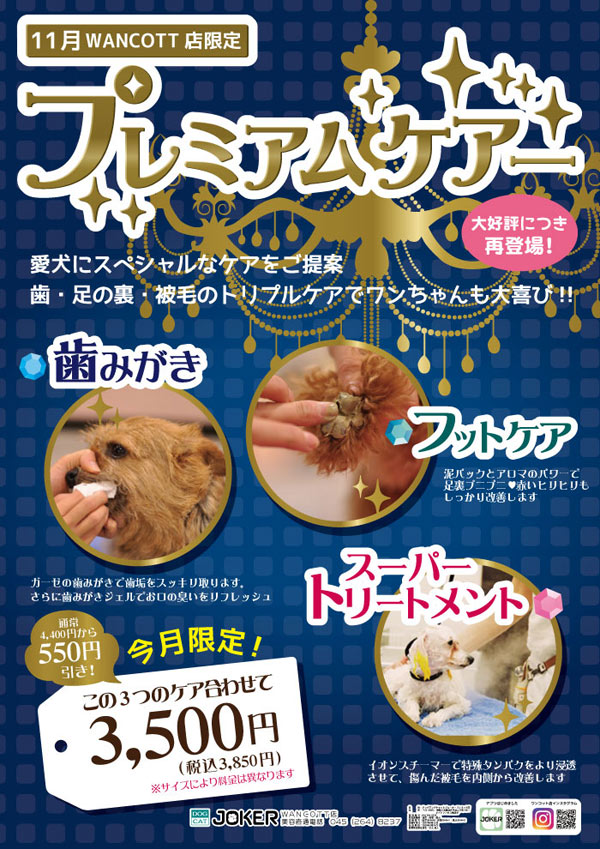 ジョーカーではわんちゃんの一時預かりは行っておりません。『WANCOTT』の一時預かりをご案内いたします。