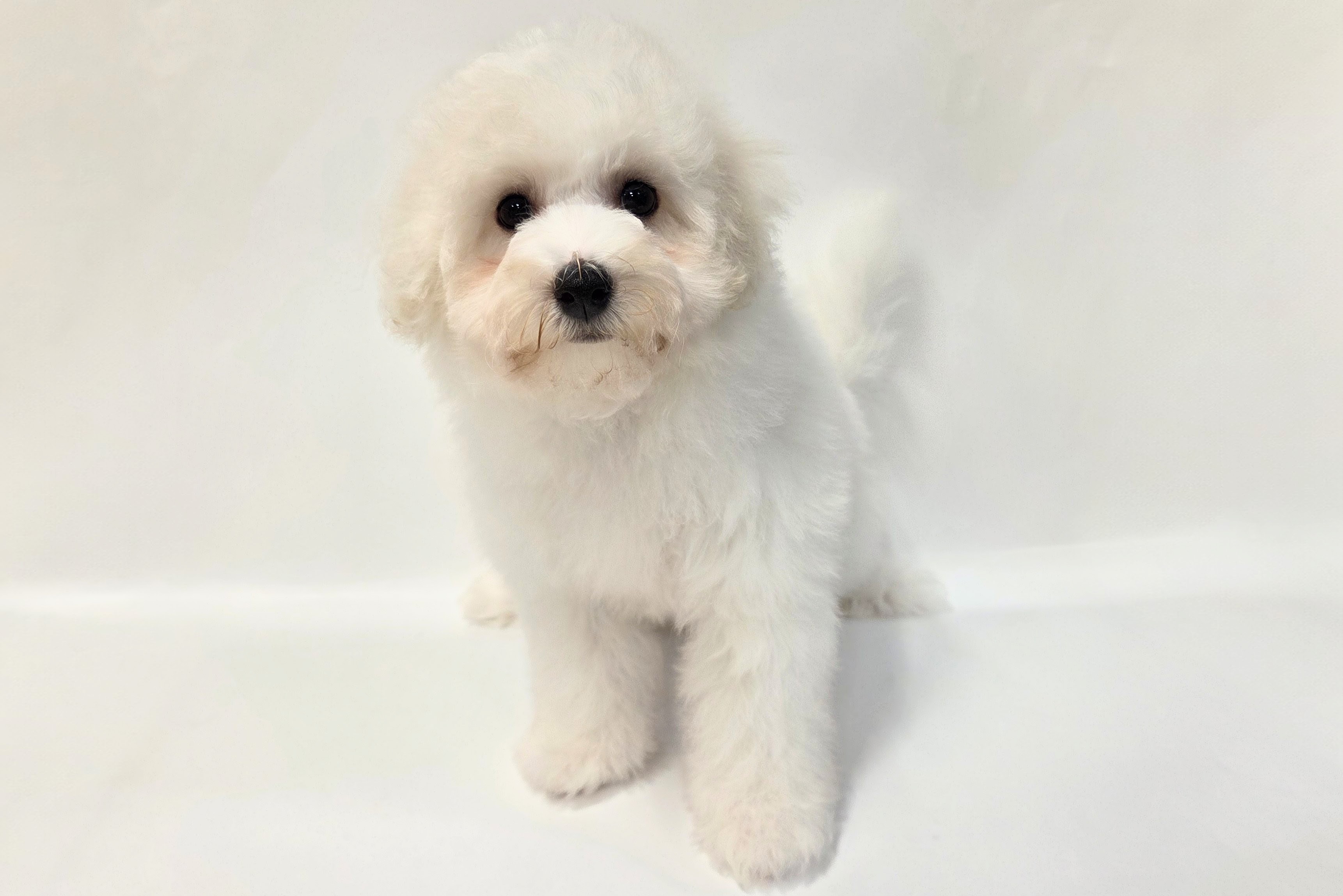 真っ白・ふわふわ!大きなおめめが魅力的なビションちゃんが入園です☆ママに似てとってもキュートなお顔をしています(*^-^*)ご飯だいすき!すくすく成長中です!