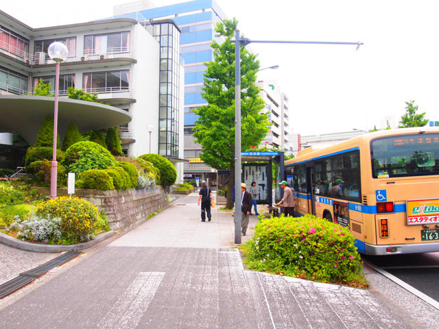 5.まっすぐ進むと右にバス停、左に横浜中央病院、正面にセブンイレブンが見えます。セブンイレブンを左に曲がります。