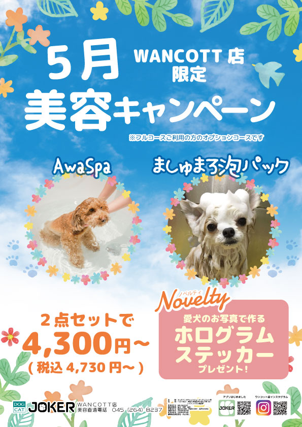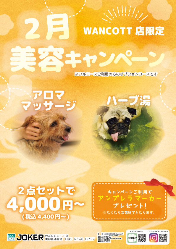 ジョーカーではわんちゃんの一時預かりは行っておりません。『WANCOTT』の一時預かりをご案内いたします。